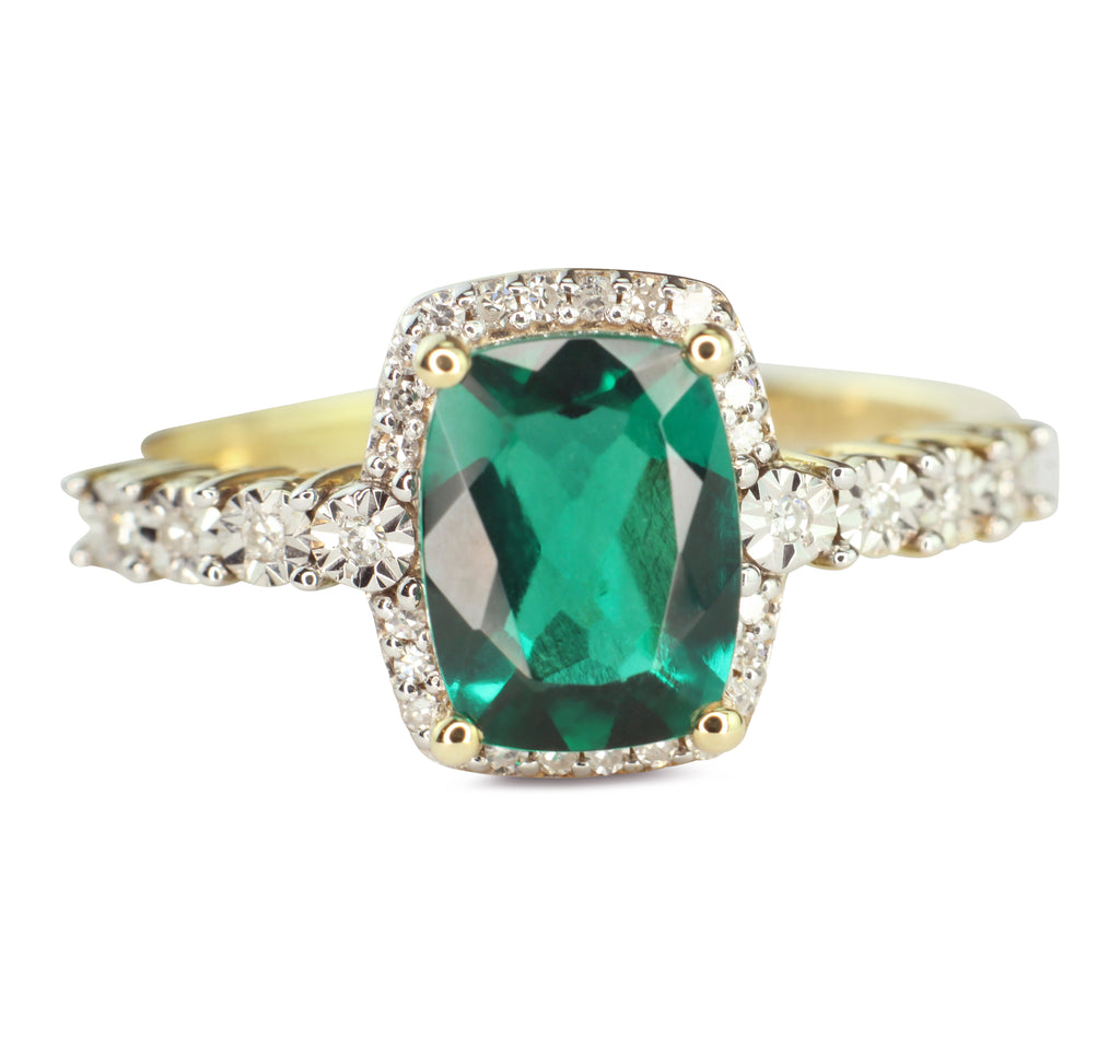 Heartland By Beverley Mitchell 10K Yellow Gold Diamond and Cushion Cut Created Columbian Green Emerald Ring