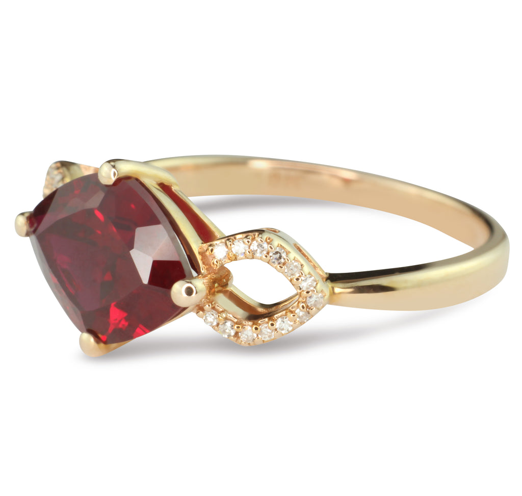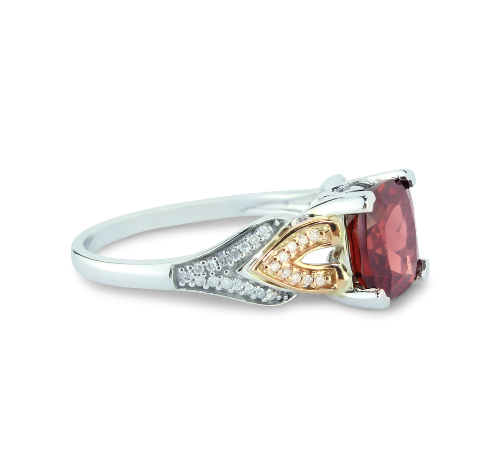 Elegant Garnet Cushion Gemstone Ring With Brilliant 1/10 cttw Diamonds In Classic 10K Rose & White Gold Setting