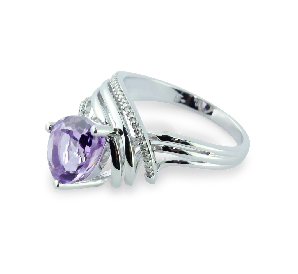 Stunning 1/15 cttw Diamond & Pink Amethyst Gemstone Ring in 925 Sterling Silver With 33 Diamonds