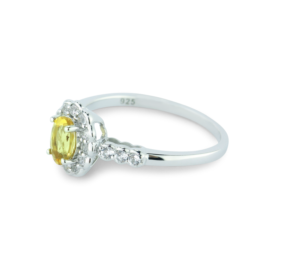 Elegant Citrine & White Created Sapphire Ring in 925 Sterling Silver