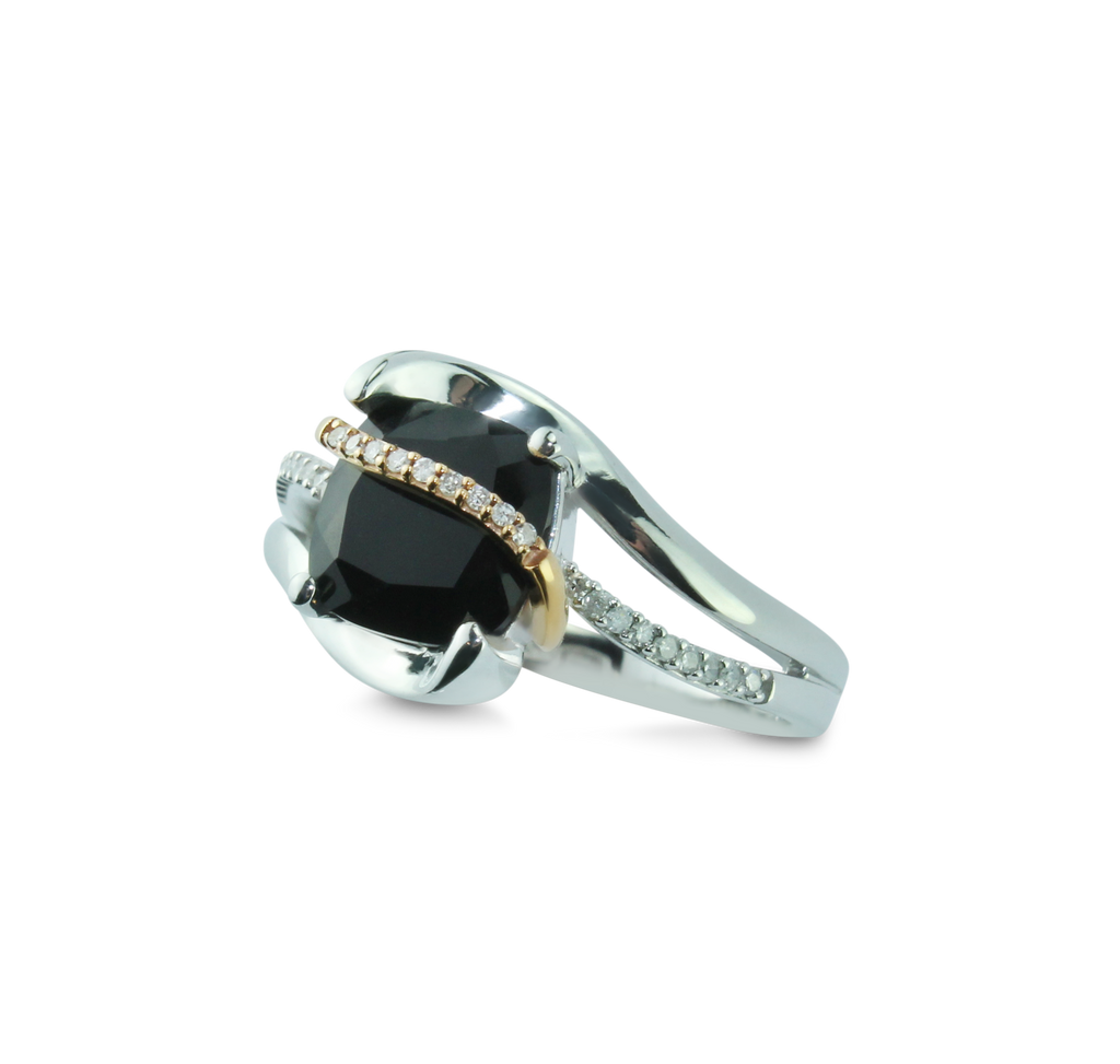 Classic 1/15 cttw Diamond & Onyx Ring With 10K Rose Gold and 925 Sterling Silver.