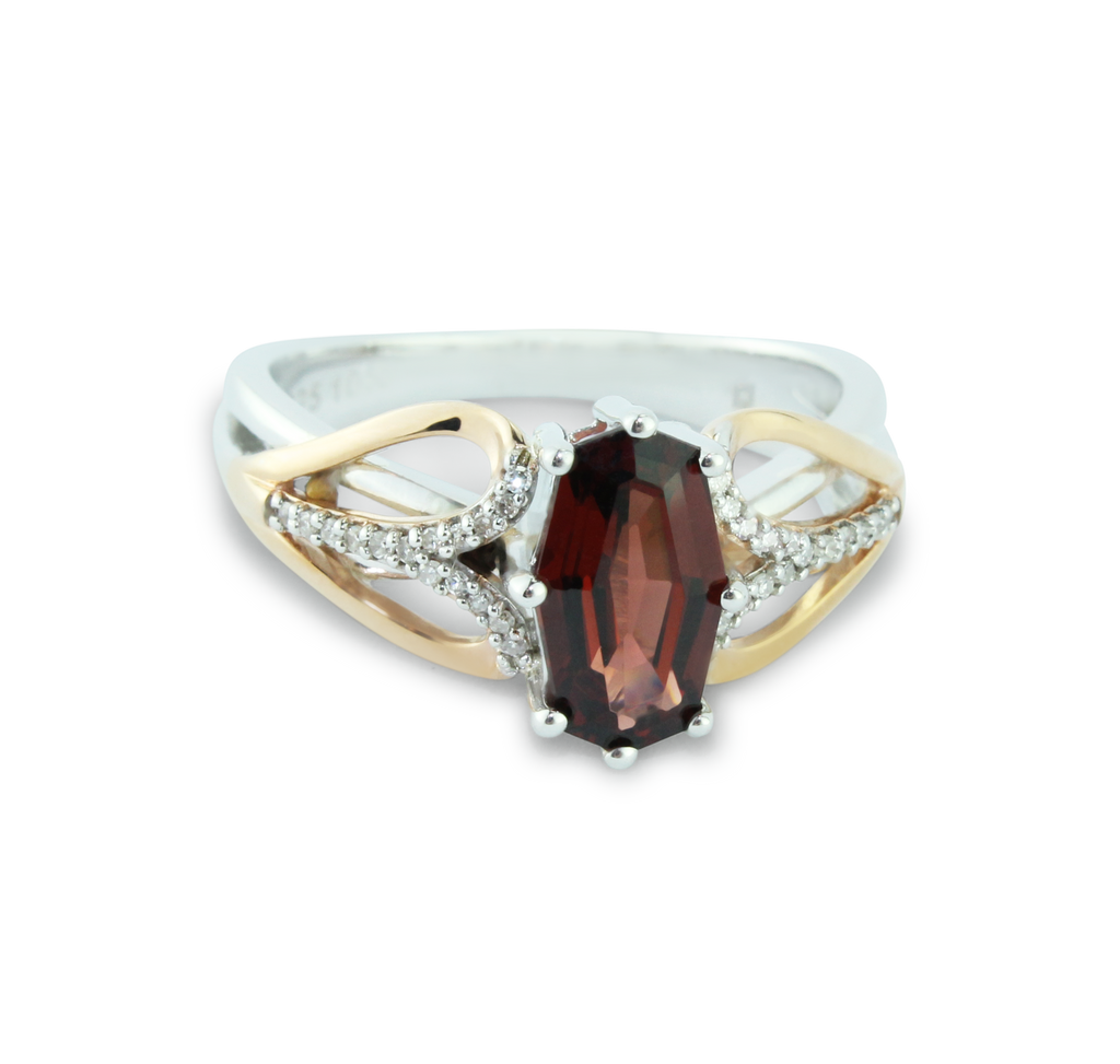 Diamond (1/15 cttw) & Garnet Gemstone Ring in 10K Rose (Pink) Gold And 925 Sterling Silver, Featuring 32 Diamonds