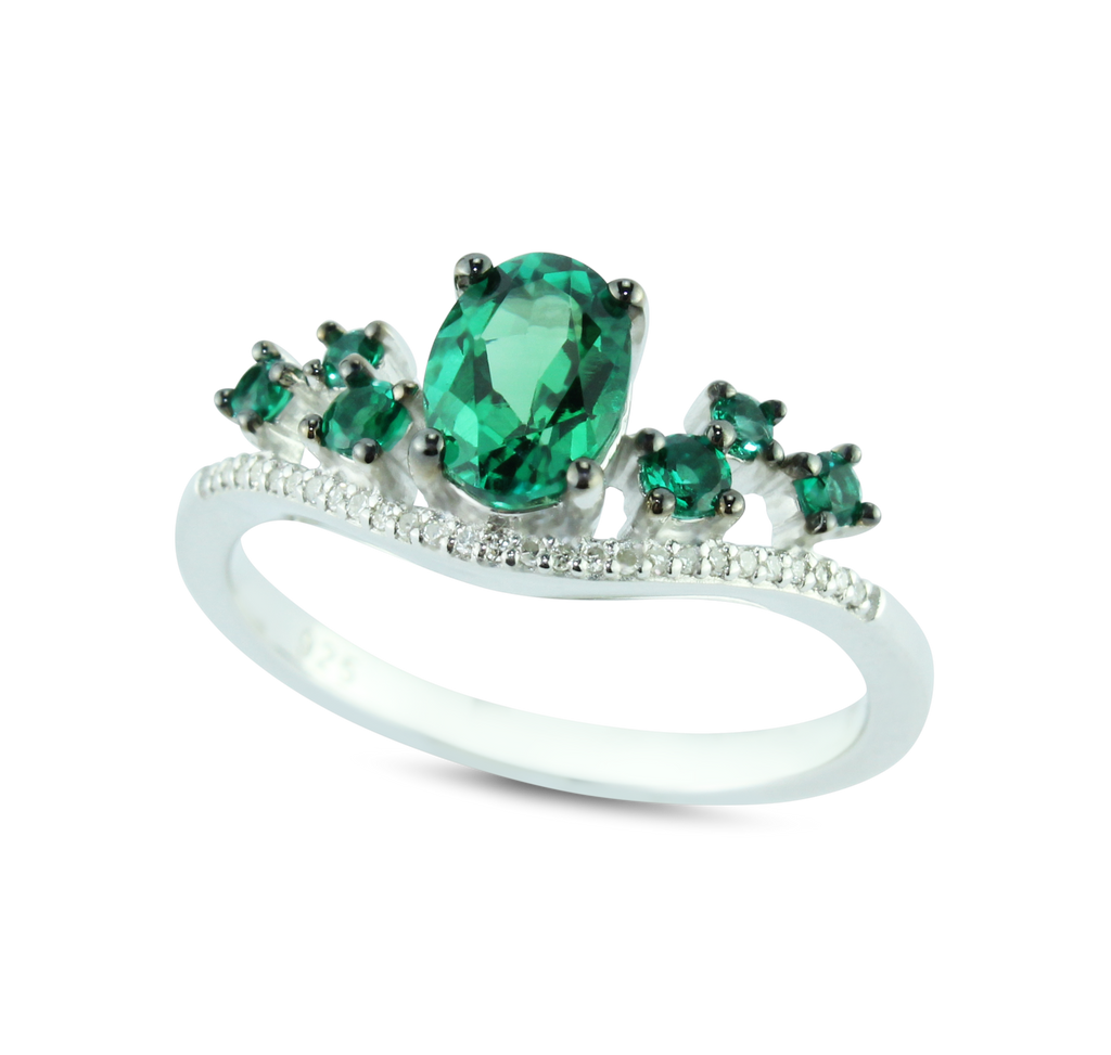 Luxurious Created Emerald Gemstone And 1/20 cttw Diamond Ring in 925 Sterling Silver Featuring 27 Diamonds