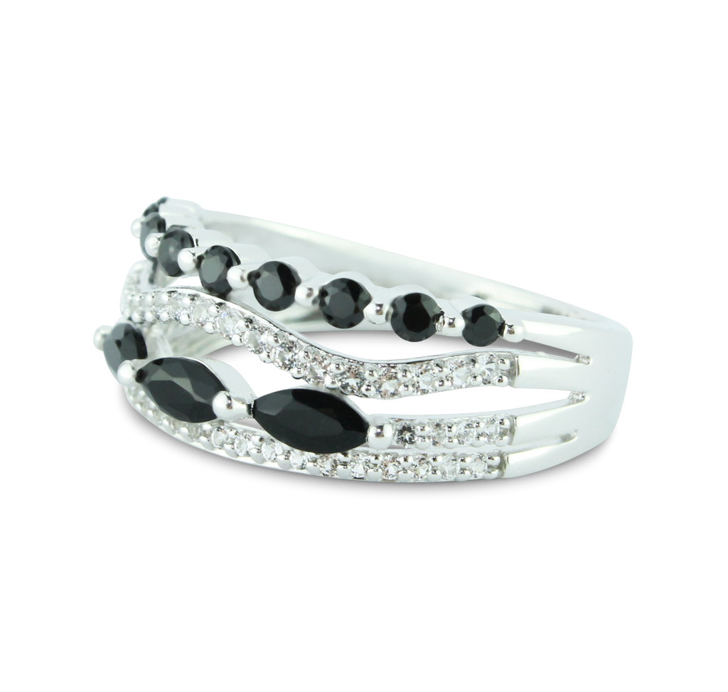 Stunning Onyx and White Topaz Statement Ring in 925 Sterling Silver with 60 gems!
