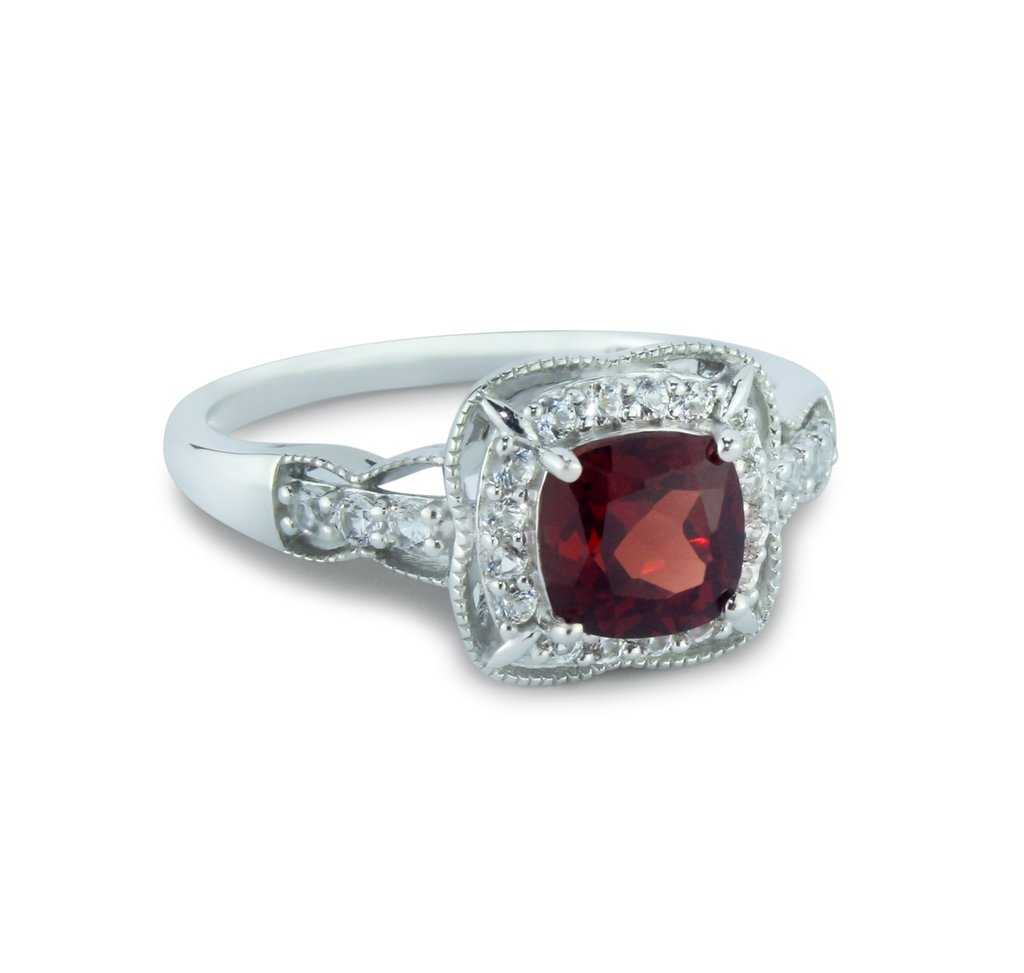 Classic Garnet & White Created Sapphire Ring in 925 Sterling Silver